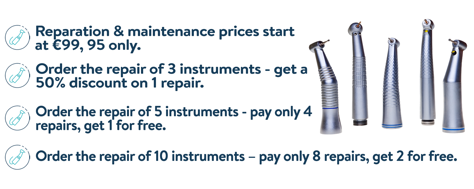 At DNTL maintenance prices already start at € 99.95 for all your hand & corner pieces and / or technology & micromotors.
